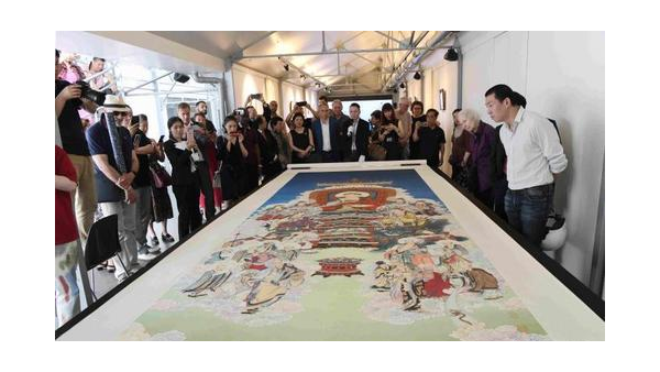 夏荊山文化藝術(shù)基金會董事長趙忠杰在當(dāng)天的開展儀式上致歡迎辭,對夏荊山的各類繪畫作品,特別是佛教繪畫作品進(jìn)行了現(xiàn)場解讀,并予以高度評價。他表示,夏荊山文化藝術(shù)基金會希望通過此次展覽,分享夏荊山的慈善精神與藝術(shù)的精妙。他說,不論對宗教或藝術(shù)是否有研究,都希望大家能夠沉浸在典雅而莊嚴(yán)的藝術(shù)世界里。當(dāng)?shù)貢r間6月10日,夏荊山繪畫作品在巴黎歐洲時報文化中心正式展出,當(dāng)天舉行了開展儀式。趙忠杰帶領(lǐng)基金會工作人員在開展儀式現(xiàn)場特別展示了夏荊山的巨幅佛教畫作,并在現(xiàn)場進(jìn)行了深入解讀。該畫作被認(rèn)為是夏荊山的精品之一。