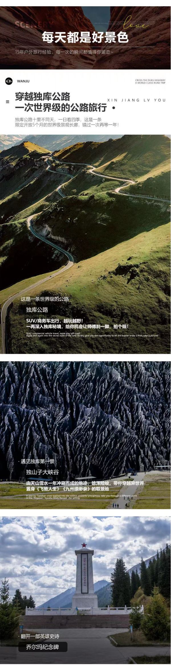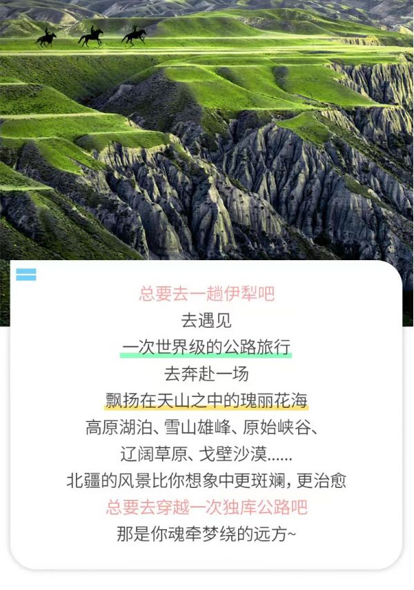 早餐后今日就踏上了傳說(shuō)中一日能看到四季的【獨(dú)庫(kù)公路】,獨(dú)庫(kù)公路宛如一條巨龍盤臥天山。這條全長(zhǎng)561公里、連接南北疆的公路,橫亙崇山峻嶺、穿越深山峽谷,貫通了南北疆,堪稱是中國(guó)公路建設(shè)史上的一座豐碑。沿途風(fēng)景只能用神奇來(lái)形容,途可欣賞神秘險(xiǎn)峻的峽谷風(fēng)景,天山腹地茂密的植被和游牧風(fēng)情及浩瀚的草原景色。經(jīng)喬爾瑪前往唐布拉,游覽【唐布拉百里畫廊】她是原生態(tài)的,是純粹的,也是純凈的。在眾美之中,有這樣一處還未被開發(fā),深藏閨中的風(fēng)景,宛如私藏的秘境,當(dāng)你撩開它的面紗,你會(huì)慢慢沉醉其間,為之傾倒,最后迷戀上它?!締虪柆敻锩沂苛陥@】,喬爾瑪革命烈士陵園位于天山深處217國(guó)道旁的新疆伊犁州尼勒克縣喬爾瑪。是為了紀(jì)念為了修建天山獨(dú)庫(kù)公路而犧牲并安葬在這里的168名革命烈士而建的國(guó)家革命烈士陵園。