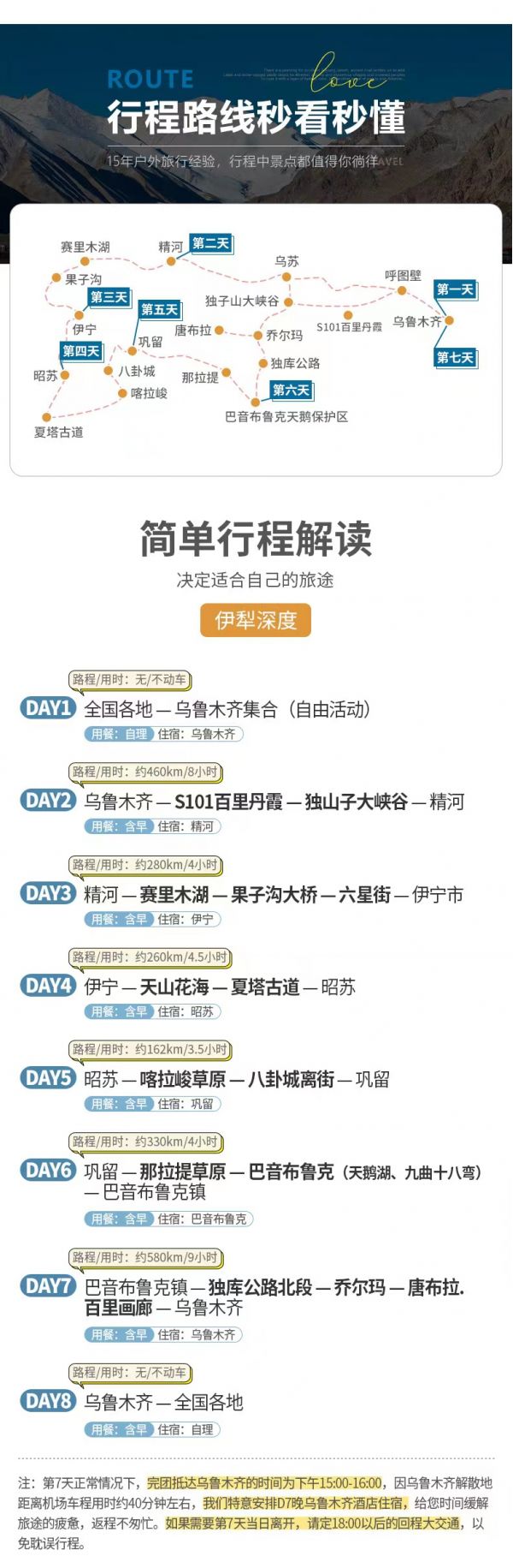 請(qǐng)對(duì)應(yīng)使用我方伊犁深度8日行程,因使用其它行程造成的投訴,責(zé)任自負(fù);請(qǐng)仔細(xì)閱讀以上行程文檔,同意并保證遵守我方安排,以免為您帶來(lái)不必要的麻煩;如產(chǎn)生合同糾紛或人身意外事故,按《中華人民共和國(guó)合同法》、《道路交通法》、《保險(xiǎn)賠償條例》裁定;本行程作為旅游合同附頁(yè)與旅游合同同等法律效力。