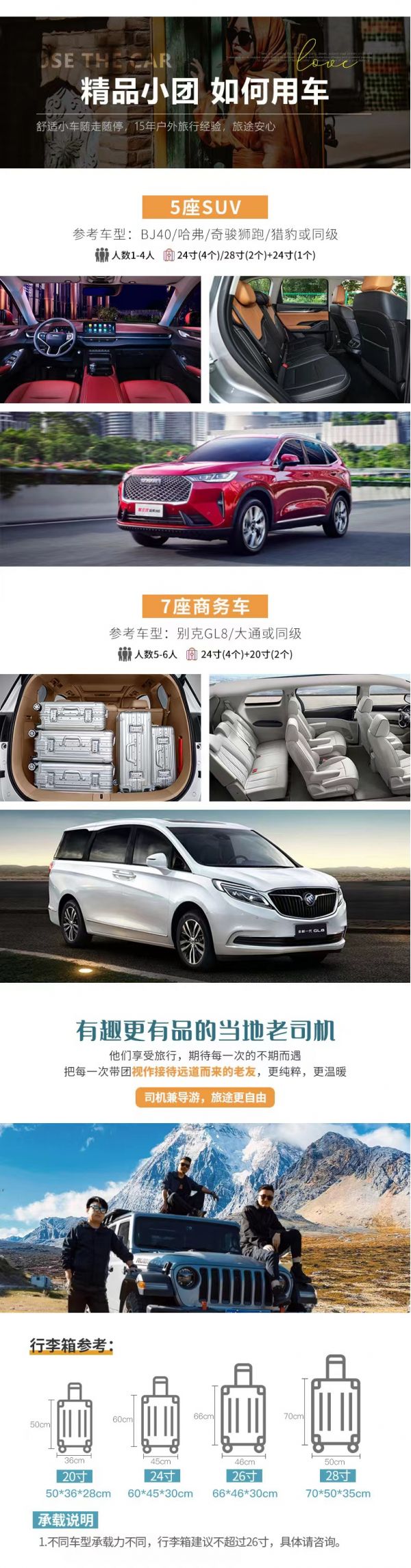 服務(wù):全程司機(jī)兼職向?qū)Вㄋ緳C(jī)不進(jìn)景區(qū))