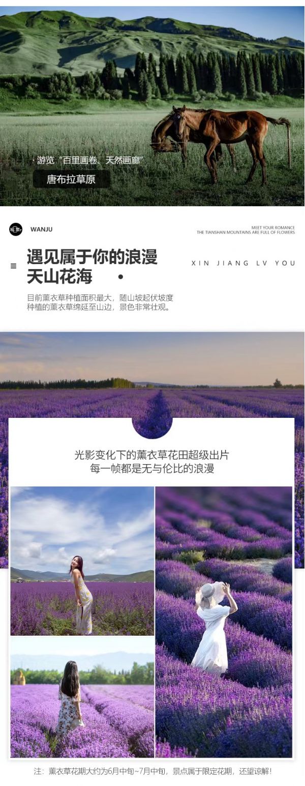 1、花期大約集中在6月中旬~7月中旬,其余時(shí)間無(wú)法看到大片花海,還望諒解。