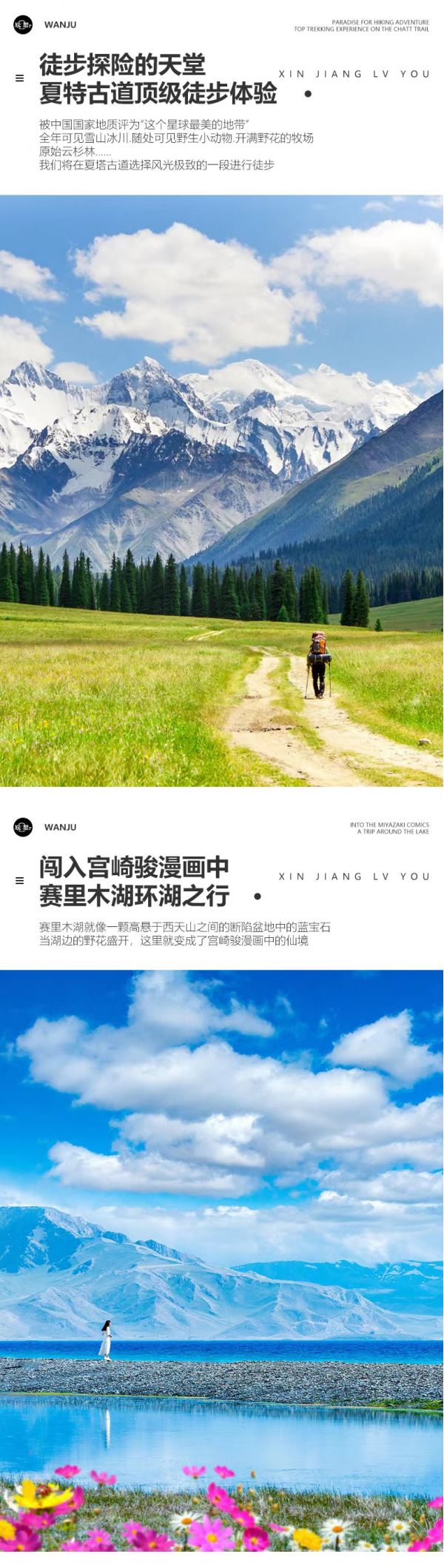 早餐后,乘車前往【天山花海】,園區(qū)建有萬(wàn)畝花海觀賞區(qū)、生態(tài)作物種植區(qū)、綜合服務(wù)區(qū)、特色餐飲街、極限挑戰(zhàn)區(qū)、空域體驗(yàn)區(qū)、網(wǎng)紅打卡區(qū)、疆域特色有機(jī)林果、特色生物種植采摘區(qū)和萌寵養(yǎng)殖區(qū)等。目前薰衣草種植面積最大,隨山坡起伏坡度種植的薰衣草綿延至山邊,景色非常壯觀。后繼續(xù)夏塔,沿途是昭蘇秀美的平原風(fēng)光,6-7月,是油菜花,紫蘇草盛開的季節(jié),走進(jìn)昭蘇草原,就如同走進(jìn)了一個(gè)廣闊的夢(mèng)境,低垂的云朵讓你迷失在無(wú)盡的色彩之中。游覽【夏塔古道】溝通天山南北,是古絲綢之路上最為險(xiǎn)峻的一條著名古驛道。2000年前秦漢的和親公主從這里遠(yuǎn)托異國(guó);1300年前唐玄奘從這里翻閱3500米的哈達(dá)木孜達(dá)坂,到達(dá)天山南麓的佛國(guó)龜茲...是戶外驢友以及徒步者的天堂。當(dāng)然我們不會(huì)去全程穿越,選擇了一段的休閑徒步。伴著緩緩升起的太陽(yáng),沿著山谷的小徑一路走近木扎爾特冰川,沿途的野花、牛羊、流水,風(fēng)景這邊獨(dú)好!