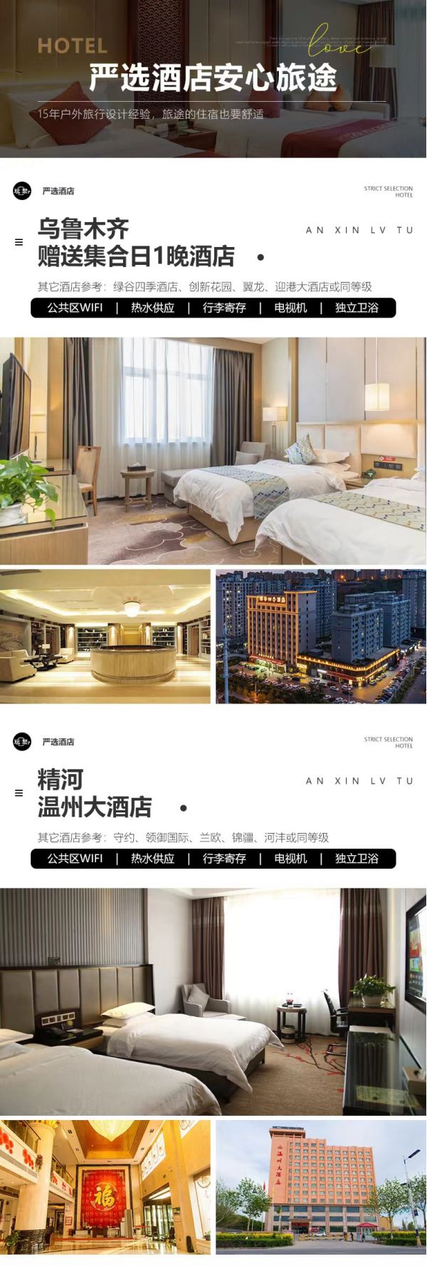 >>烏魯木齊:綠谷四季酒店、創(chuàng)新花園、翼龍、迎港大酒店或同級(jí)酒店