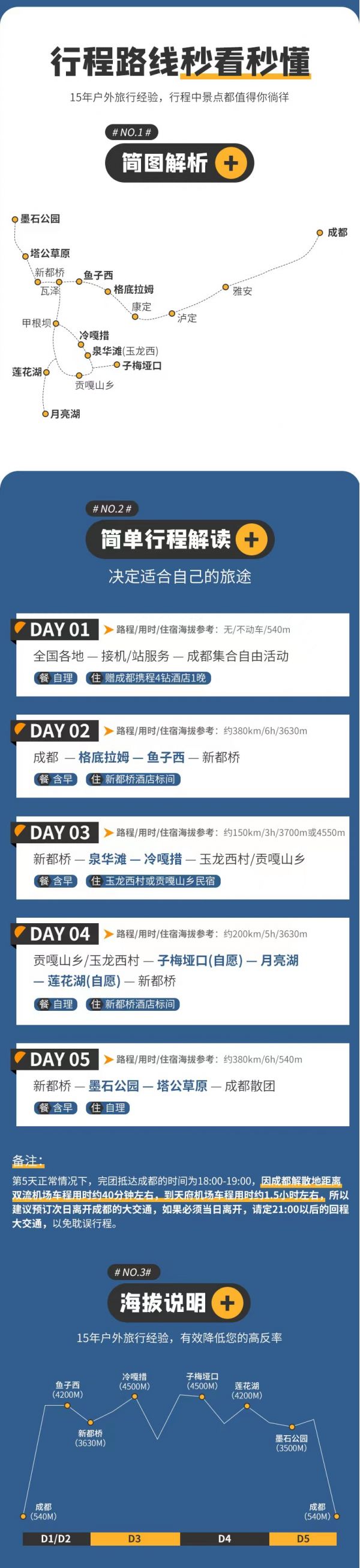 3、如果冷噶措無法前往,則替換為木雅措。冷嘎措/木雅措如果需要中轉(zhuǎn)當?shù)剀囘M入,費用自理,參考費用260元/人,若領(lǐng)隊陪同上山,中轉(zhuǎn)車費客人負責(zé)AA。
