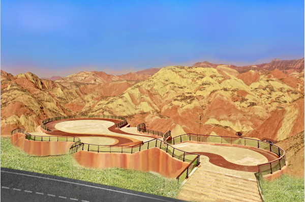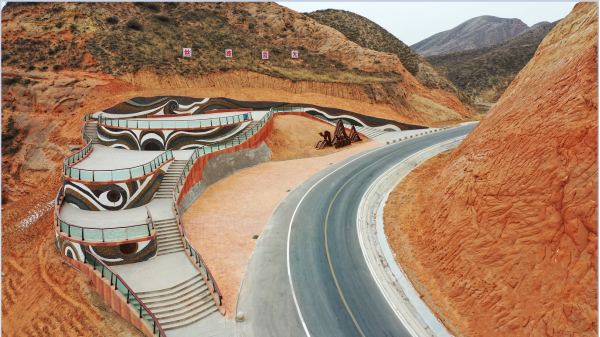 絲路霞光觀景平臺(tái)以丹霞風(fēng)貌作為設(shè)計(jì)背景切入,大面積采用流線型設(shè)計(jì)手法,將一帶一路的精神貫穿始終