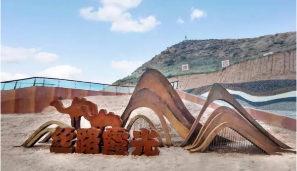 井部落文化廣場(chǎng)以當(dāng)?shù)爻鐾恋纳尘幕拍惯z址為文化線索,結(jié)合現(xiàn)有的鷹巖崖壁景觀和山谷平地,以出土“鷹”首杖的“鷹”為圖騰元素,規(guī)劃“鷹巖祭天”活動(dòng)場(chǎng)景。這里的摩崖石刻藝術(shù)地展現(xiàn)了古絲綢之路的繁華盛況,可以讓人穿越時(shí)空,回味沙井文化歷史。