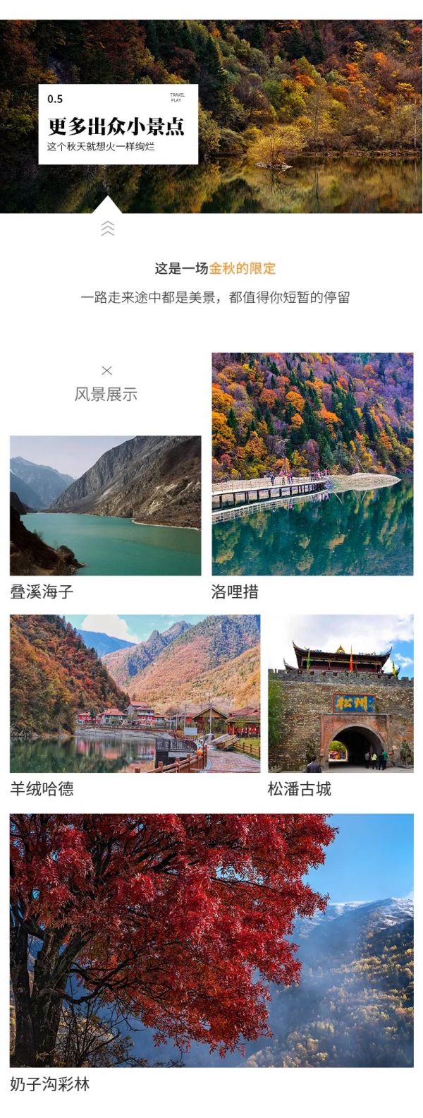 畢棚溝.奶子溝彩林.洛哩措.羊絨哈德.達古冰川.黃龍.九寨溝.松潘古城.疊溪海子