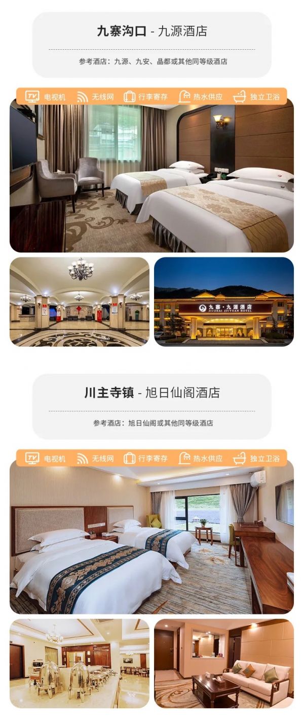 九寨溝口:九源酒店、九安賓館、晶都或其他同級別