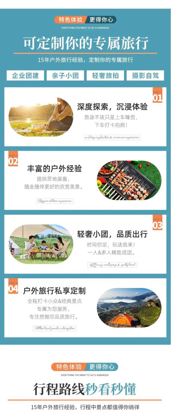 私人訂制:我們業(yè)務(wù)范圍囊括了全國各大城市,川西、西北、新疆、西藏,在路上永遠有我們的身影。我們將為每一個有定制需求的你策劃出獨屬于自己的完美旅行。