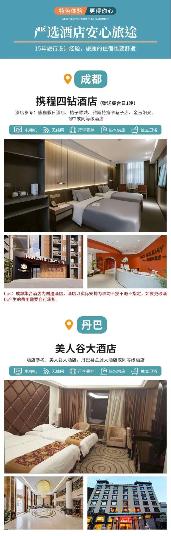 tips:成都集合酒店為贈送酒店,酒店以實際安排為準均不換不退不指定,如要更改酒店產(chǎn)生的費用需要自行承擔(dān)。
