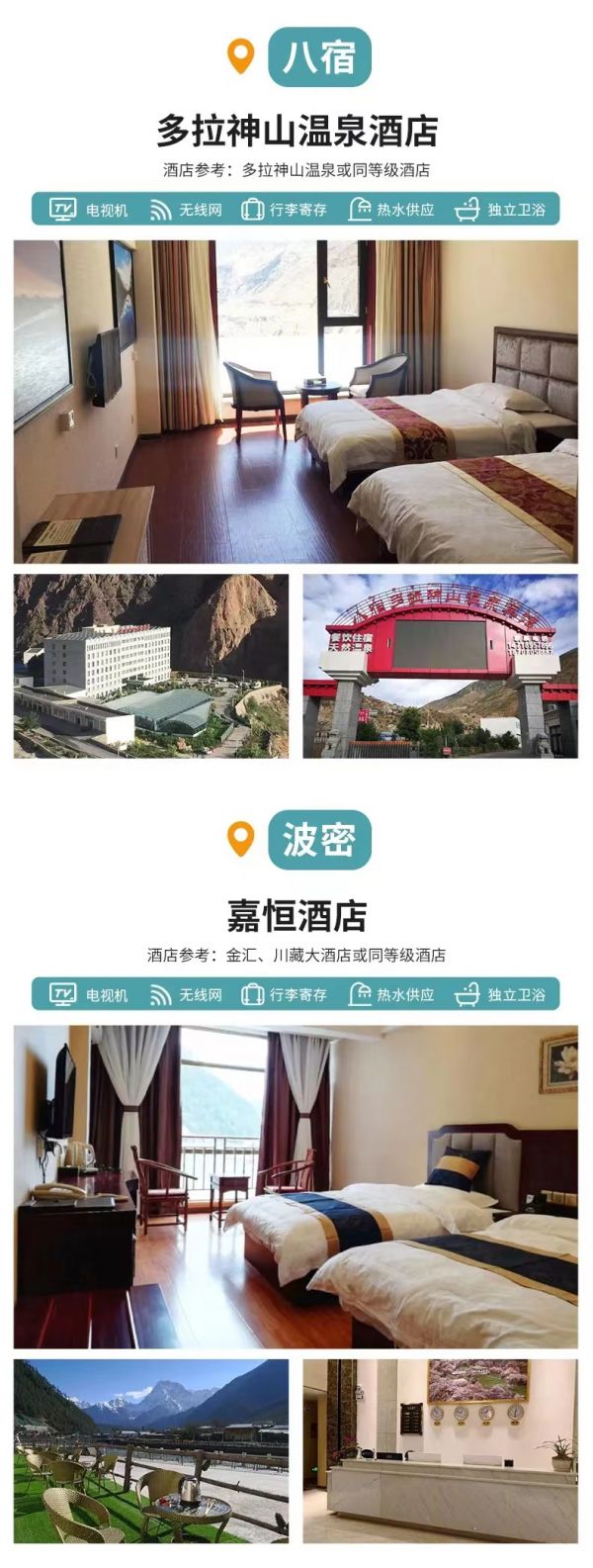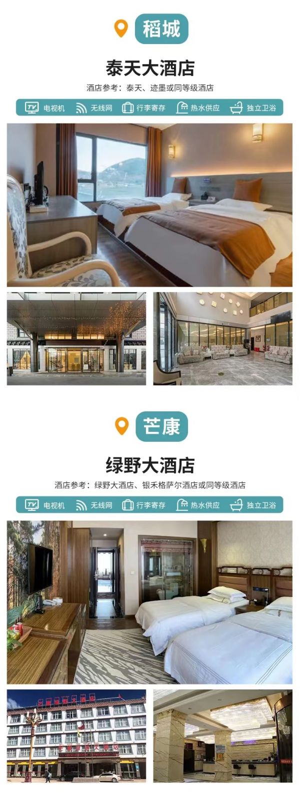 溫馨提示:(1)根據(jù)實際情況,巴塘縣和芒康縣酒店安排其一入住。海子山