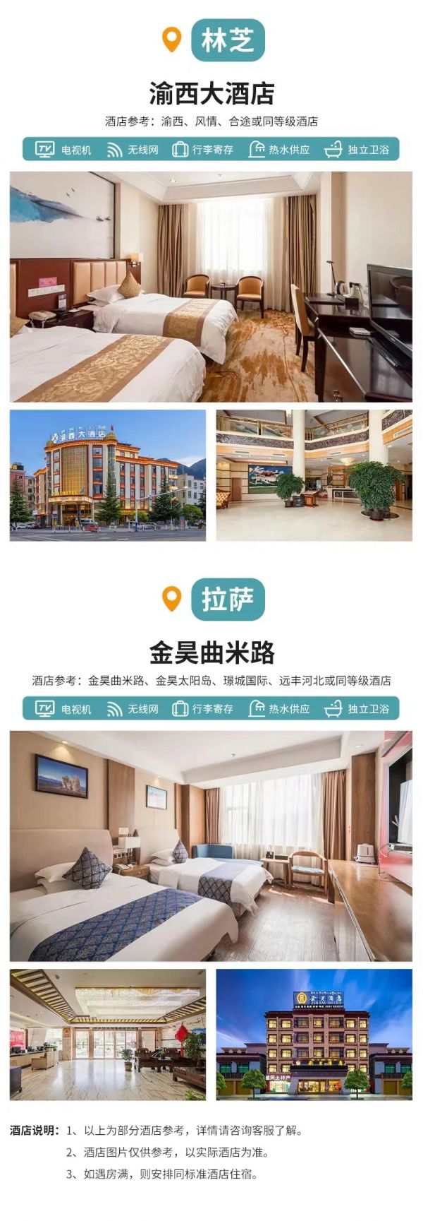 l 林芝:風(fēng)情大酒店、渝西、合途或其他同級酒店