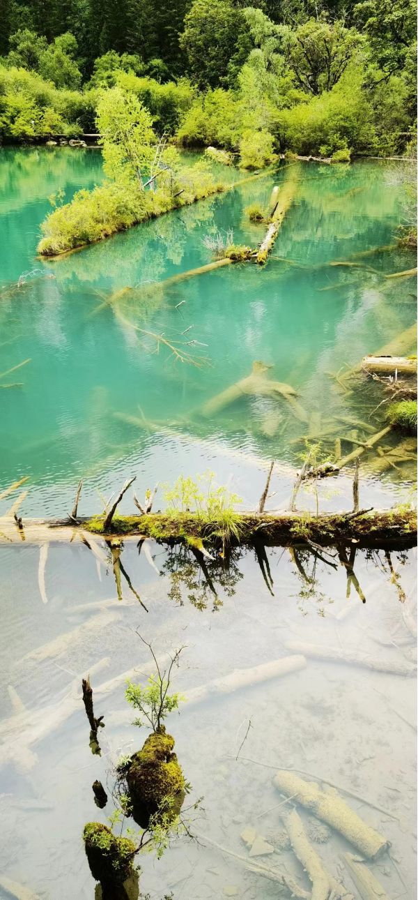 九寨溝四季景色各異:仲春樹綠花艷,盛夏幽湖翠山,金秋盡染山林,隆冬冰塑自然。雪峰、翠海、疊瀑、藍(lán)冰、彩林、藏情,“九寨六絕”倍受世人青睞?!K年碧藍(lán)澄澈,古樹環(huán)繞,奇花簇?fù)?,宛若鑲上了美麗的花邊,各具特色?