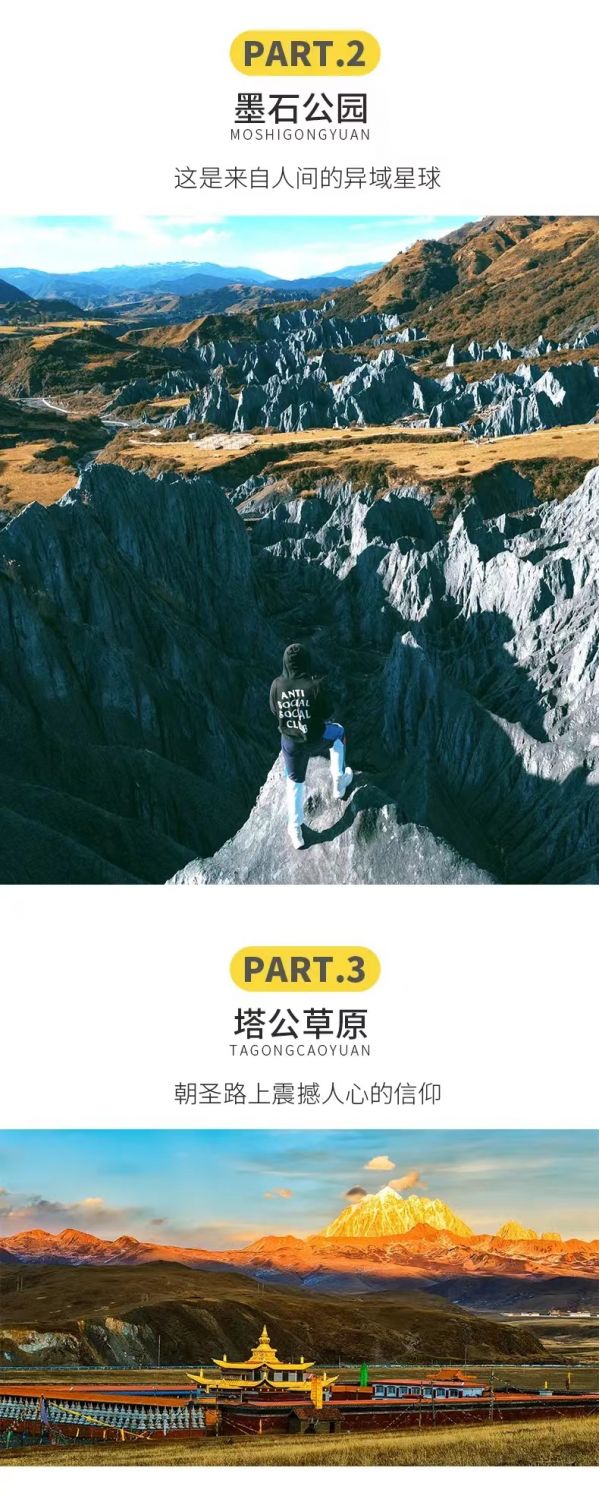 1、魚子西和格底拉姆均可以欣賞雪山日落,景點(diǎn)根據(jù)實(shí)際情況二選一;