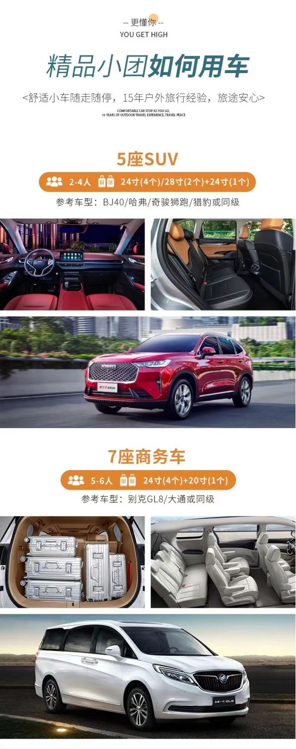 交通:2-8人VIP私享小團(tuán)全程舒適SUV/商務(wù)車出行;車型大小根據(jù)實(shí)際人數(shù)安排,且由駕駛經(jīng)驗(yàn)豐富的司機(jī)為您的出行保駕護(hù)航,報(bào)價(jià)包含車費(fèi)、油費(fèi)、停車費(fèi)、維修費(fèi)及司機(jī)勞務(wù)費(fèi)。