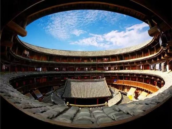 【懷遠樓建】于1905-1909年,是目前建筑工藝最精美、保護最好的雙環(huán)圓形土樓。樓高四層13米,直徑38米,每層34間,共136間,為簡氏家族所建。懷遠樓最引人注目之處在于內(nèi)院核心位置的祖堂,也就是家族子弟讀書的地方“斯是室”?!八故鞘摇本尚銡?,上下堂建筑占地190平方米,室內(nèi)雕梁畫棟,古樸天然,書卷氣濃備注:中途??Х刃菹^(qū),水果休息區(qū)為上洗手間,絕非購物店。