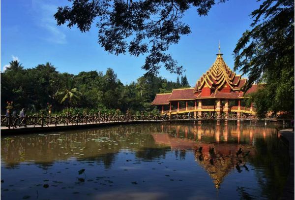 后游覽【原始森林公園】(含門票,自理觀光電瓶車60元/人)位于景洪市東部,瀾滄江以北,是一片原始森林。公園內(nèi)代步工具是游覽車,主要景點(diǎn)有孔雀山莊,當(dāng)馴養(yǎng)員一聲哨響,上百只孔雀越過波光粼粼的湖面,場(chǎng)面非常震撼。另外兩站是愛伲山寨和民族風(fēng)情演藝場(chǎng),既可以觀看民族歌舞表演,也可以參加小型潑水節(jié),很有民族風(fēng)情。后游覽【曼聽公園】(含門票)位于云南省景洪市東南,是個(gè)天然的村寨式公園,也是西雙版納歷史悠久的城市公園。旅行者在曼聽公園可以去藤本植物區(qū)、孔雀園看看動(dòng)植物,也可以參觀頗具風(fēng)情的傣族和泰國(guó)式建筑。隨后游覽【西雙版納總佛寺】是西雙版納佛教信徒拜佛的中心,來此參拜的信徒絡(luò)繹不絕??偡鹚陆ㄖ髿庑蹅?,一角一處都各不相同,雕刻精美的梁柱,讓人看著都是一種享受。游客可以先在外面欣賞精美大氣的建筑物,如果有時(shí)間的話可以走近寺內(nèi),去接受佛教的洗禮,安靜地放空自己,聆聽自然的聲音??偡鹚麓稣Z稱為“洼巴潔”,是西雙版納佛教信徒朝圣的中心,解放以前是西雙版納地區(qū)高統(tǒng)治者及其土司頭人拜佛的名地,也是西雙版納等級(jí)較高的佛寺。晚上可自費(fèi)觀看曼聽篝火晚會(huì)或勐巴拉納西/夜游船280元/人。