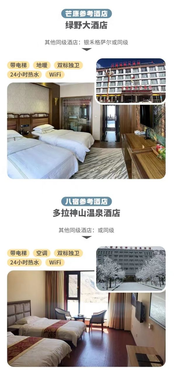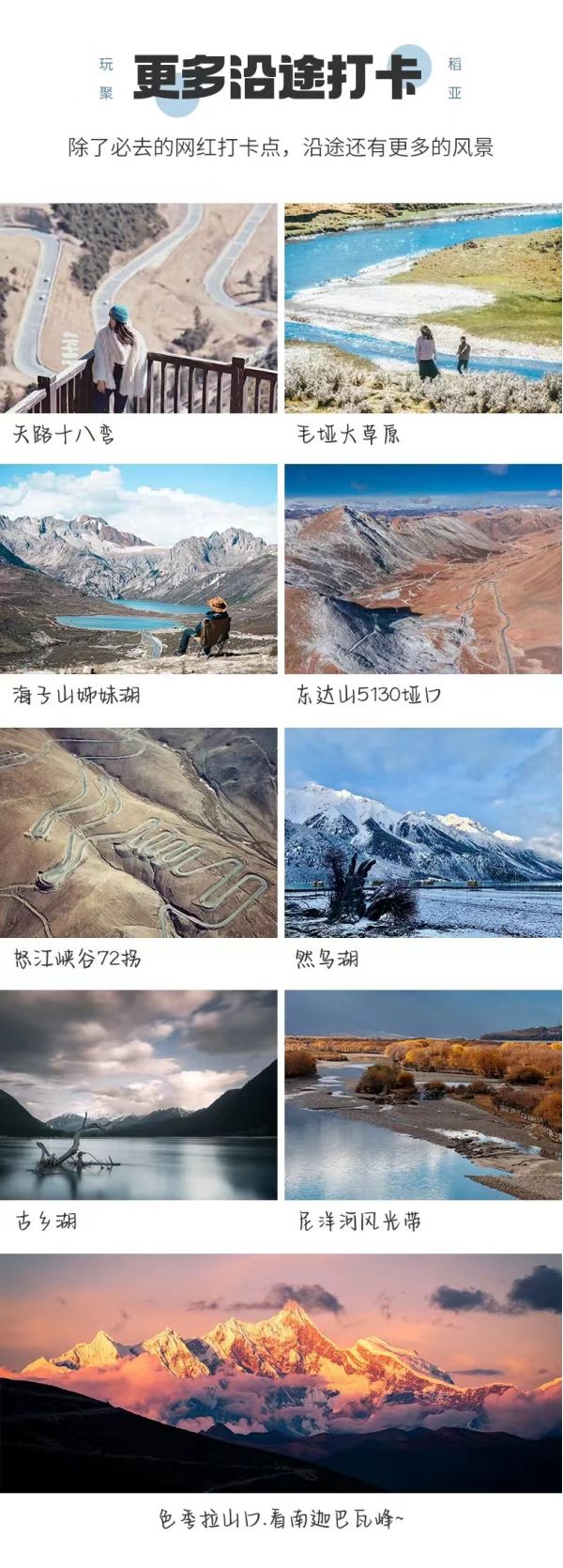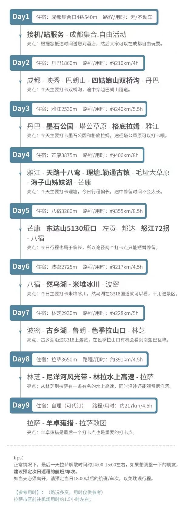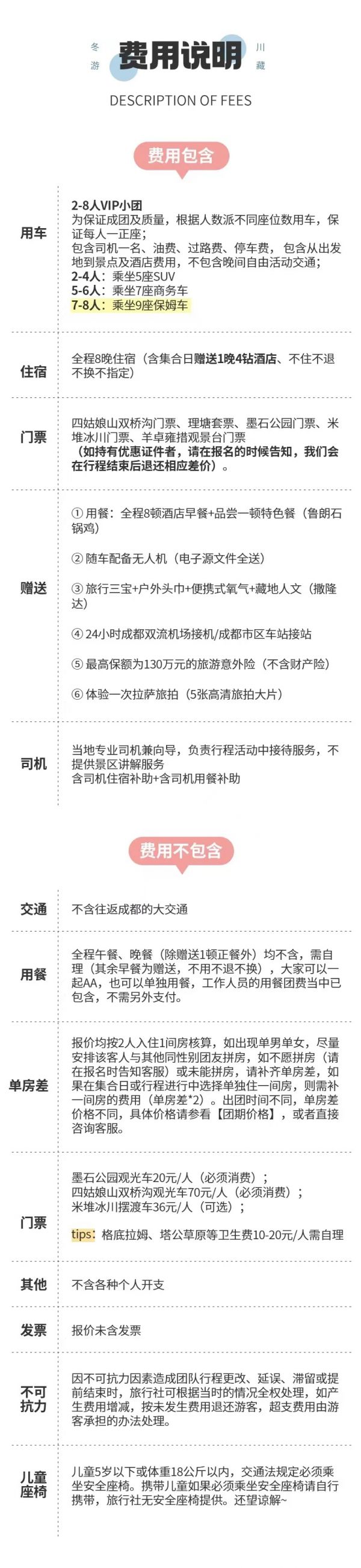1.冬季11月-次年3月如因魚子西/格底拉姆封山無法前往,則將魚子西/格底拉姆景點換為八郎生都。