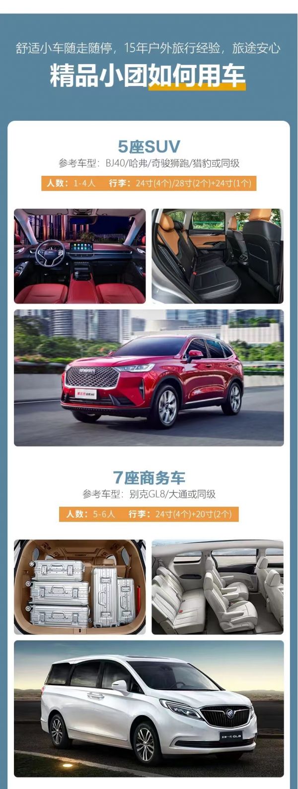 交通:2-8人VIP私享小團(tuán),全程舒適商務(wù)車出行,車型大小根據(jù)實(shí)際人數(shù)安排,保證一人一正座位,且由駕駛經(jīng)驗(yàn)豐富的司機(jī)為您的出行保駕護(hù)航,報(bào)價(jià)包含車費(fèi)、油費(fèi)、停車費(fèi)、維修費(fèi)及司機(jī)勞務(wù)費(fèi)。