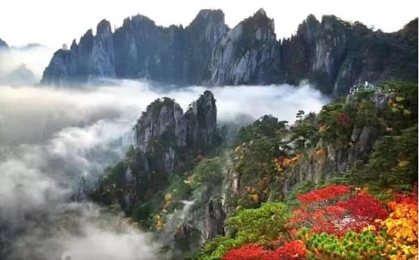 黃山“黃山歸來不看岳”,這是吸引眾多游客登黃山賞美景的一大理由。這個(gè)季節(jié),如畫的秋色為黃山平添了幾份秀美。黃山的秋天來得早,到了10月,黃山的月平均氣溫只有11.7℃。黃山的秋季,別有種種勝景,明代大旅行家徐霞客曾贊美黃山秋色“楓林相間,五色紛披,燦若圖繡”。仰望天空,黃山的天湛藍(lán)如洗,入了秋更顯得高遠(yuǎn),空曠無邊、萬里無云,更無一絲雜質(zhì),像一塊覆蓋大地的藍(lán)寶石。秋用赤、橙、黃、綠、青、藍(lán)、紫七色神筆把黃山描繪得色彩斑斕,濃墨重彩地勾勒燦若圖繡的世界,遠(yuǎn)峰近松,到處充滿了秋色的誘惑,讓人難以抗拒。