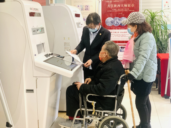 結(jié)合老年人實(shí)際需求配置愛(ài)心座椅、老花鏡、輪椅、急救藥箱、無(wú)障礙坡道或無(wú)障礙臨時(shí)坡道等助老便民設(shè)施。同時(shí),設(shè)置“綠色通道”,為有困難、有需要的老年客戶(hù)提供業(yè)務(wù)優(yōu)先辦理綠色通道,減少等待時(shí)間。大堂經(jīng)理在招迎、引導(dǎo)、答疑等流程始終做到主動(dòng)熱情、耐心細(xì)致。尤其是,注重對(duì)老年客戶(hù)指導(dǎo)和幫助,保障老年客戶(hù)在網(wǎng)點(diǎn)安全、順利、快捷地辦理業(yè)務(wù),讓老年客戶(hù)感受到更多關(guān)懷。