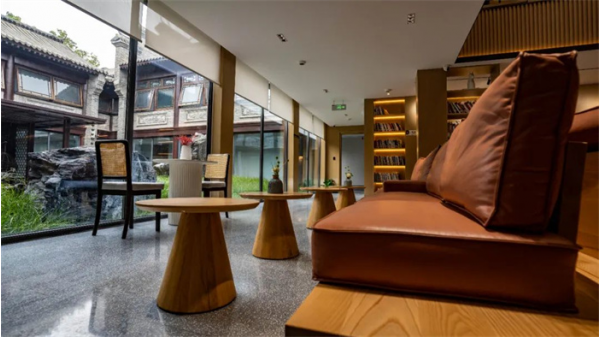 海源雅集不負(fù)其名,在設(shè)計(jì)風(fēng)格上融入中國(guó)傳統(tǒng)文化的元素,取“山水相問(wèn)”之意境,松柏、石橋、山水、亭榭寫(xiě)意于方靜之內(nèi),呼應(yīng)“天圓地方”,極具巧思。在功能分區(qū)上,既有禪意的茶舍,又有安靜閱讀的書(shū)吧,還有較為私密的小包間,滿足不同需求。房間分別用春澤、夏嬋、雁秋、冬歸用作包間的名稱,特別有禪意。酒店的大廳就是書(shū)房,一頁(yè)頁(yè)書(shū)本形狀的吊燈,像一片片潔白輕盈的羽毛掛在房頂,讓人望之生靜,整顆心都安靜下來(lái)。