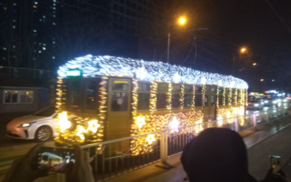 “光影電車(chē)”運(yùn)營(yíng)后,迅速成為大連的“跨年網(wǎng)紅”。市民游客紛紛涌上街頭,追尋“光影電車(chē)”的印跡。
