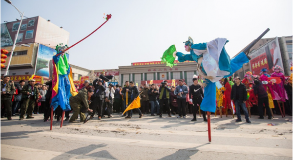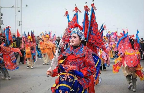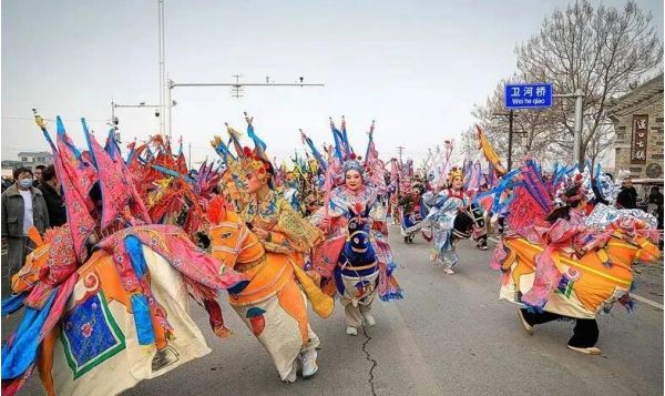 人們?yōu)楸苊饣馂?zāi),以這種方式祭祀火神,表達(dá)了勞動(dòng)人民一種辟邪除災(zāi)、迎祥納福的美好愿望?!盎鹕駨R會(huì)”舉辦期間,到處人山人海,傳統(tǒng)節(jié)目有大集街高蹺、軍莊秧歌、背閣、抬閣、八卦秋、武術(shù)表演、竹馬、蓮花燈、火龍、花船等,男女演員盛裝上陣,從臉譜到服裝,無不體現(xiàn)了濃郁的傳統(tǒng)文化色彩。