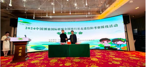 3月15日,劉寶平受邀參加由信陽市文化廣電和旅游局主辦,由信陽市文旅文創(chuàng)行業(yè)協(xié)會旅行社專業(yè)委員會承辦的2024博旅國際聯(lián)盟全國旅行社走進信陽考察踩線活動,來并代表博盟和當(dāng)?shù)睾炗喓献鲄f(xié)議。