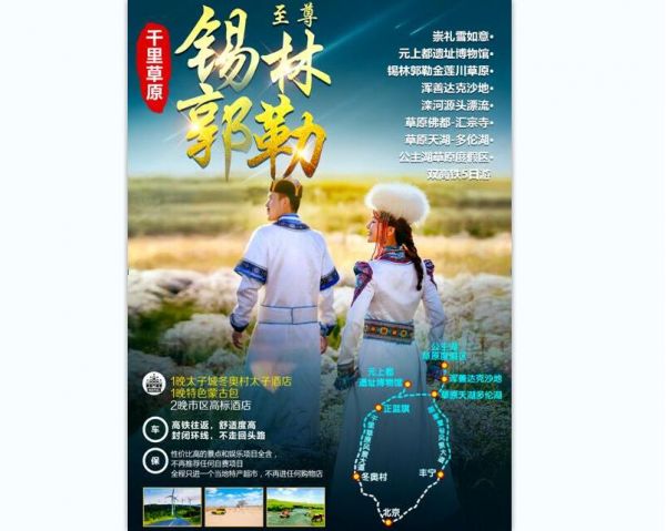 聊城乘高鐵或動車抵達北京南站。14:30前北京南站集合,工作人員舉”千里草原、錫林郭勒”導游旗,統(tǒng)一接站!我們的工作人員會提前一天聯(lián)系您告知出行事宜,請您保持手機暢通,并耐心等候。乘車前往冬奧小鎮(zhèn)——崇禮,途觀世界八大奇跡之一八達嶺長城,晚餐后入住。