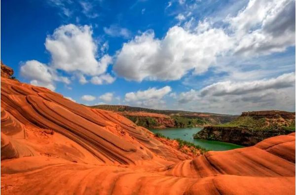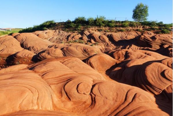 龍洲丹霞地貌其奇特的地貌和神奇的外觀令人嘆為觀止。紋理線條很是清晰,像一層層的海浪,環(huán)繞著起伏的小山丘形成了差異的走向,赤色的沙石在周圍黃土高原的映襯下顯得色彩濃郁,驚艷奇絕。