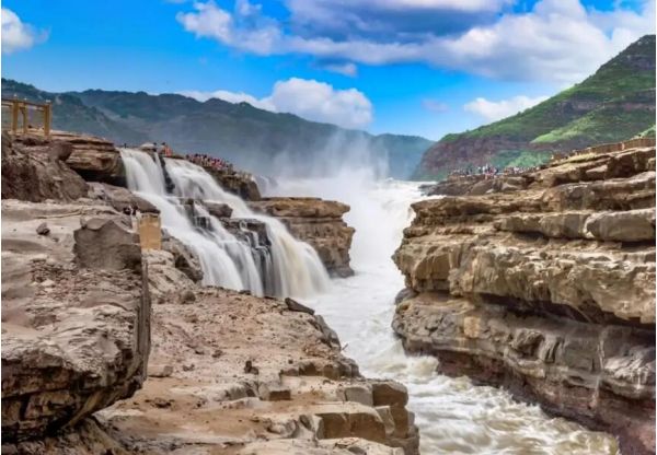 觀賞黃河壺口瀑布,其奔騰洶涌的氣勢如同中華民族的精神。它西臨陜西省延安市宜川縣壺口鄉(xiāng),東瀕山西省吉縣。黃河至此兩岸石壁峭立,河口收束狹如壺口,故名壺口瀑布。瀑布落差9米,蘊(yùn)藏豐富的水力資源。奔騰的黃河水聲震天地,絢麗的彩虹美輪美奐,輕煙生水底,黃河壺口美麗的自然景觀讓游人們流連忘返。