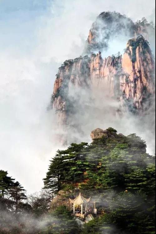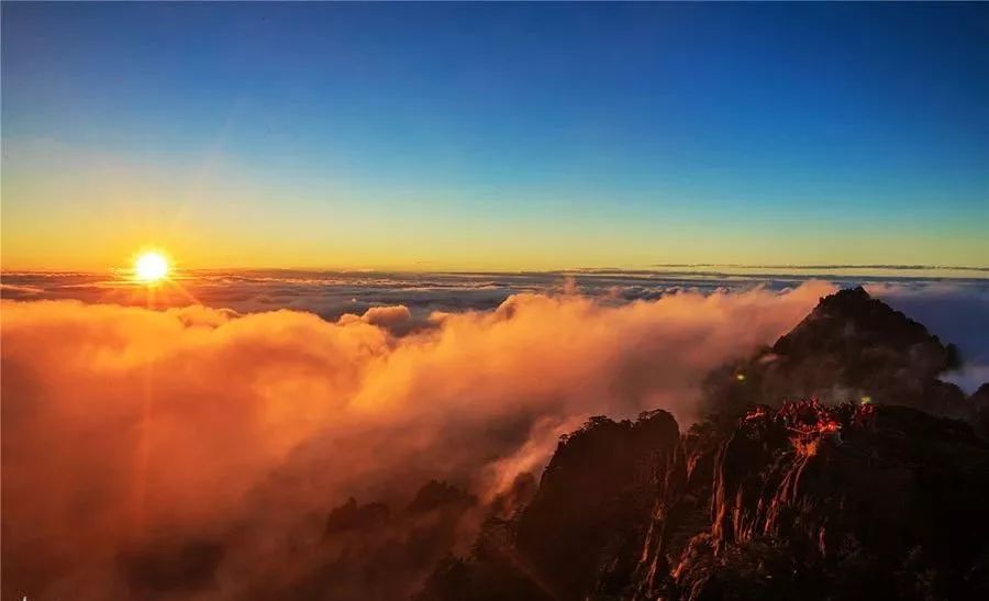 在黃山,有一種絕景,那就是日出和日落時伴跟著云海的呈現(xiàn),被稱作“霞?!被颉跋间佋啤薄蚰鼗蚍v或縹緲的云海在霞光的映襯下,霞光萬道,照射在云海之上,色彩斑瀾,華光燦艷,涌金流銀,形成黃山奇奧的“霞鋪云”奇景。秋日,是黃山呈現(xiàn)霞鋪云概率較高的季節(jié),是以秋游黃山的人們必然要抓住機(jī)緣,若能有一次不雅鑒賞“霞鋪云”奇景的機(jī)緣,必然會使您的黃山之旅加倍難忘。