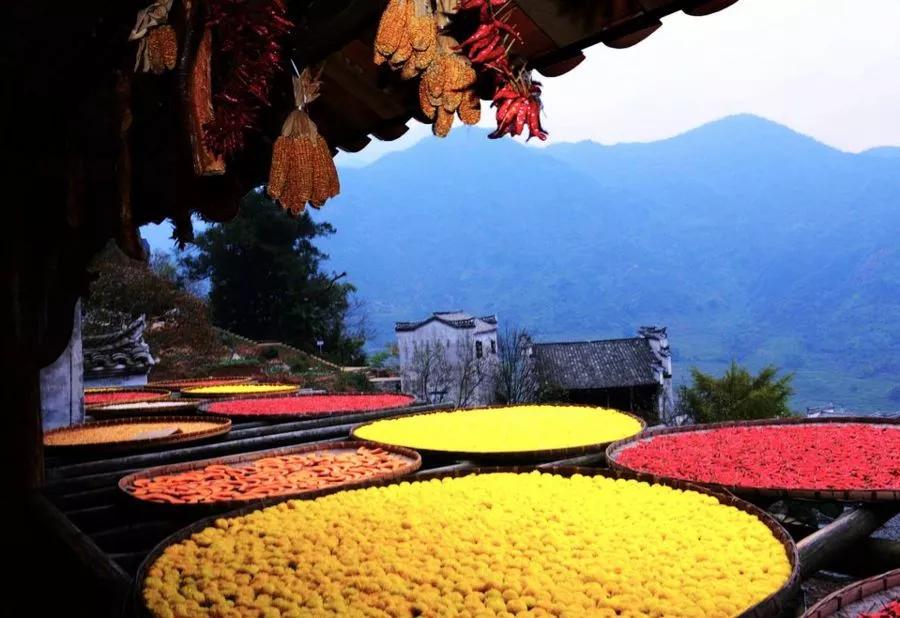 到了秋天在滿天的晴空下,卻多出了一道別樣的風(fēng)景——篁嶺曬秋。