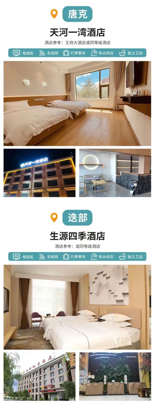 住宿:6晚當(dāng)?shù)厥孢m酒店,確保酒店干凈衛(wèi)生,溫馨舒適。因沿途高原藏區(qū)條件有限,如果酒店設(shè)施沒(méi)有達(dá)到您的期望,敬請(qǐng)諒解。參考酒店如下: