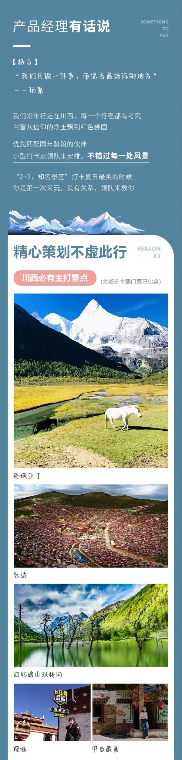 (9)行程中不只色達(dá)一個(gè)景點(diǎn),還有更美好的景點(diǎn)等待大家,預(yù)祝大家旅途愉快!