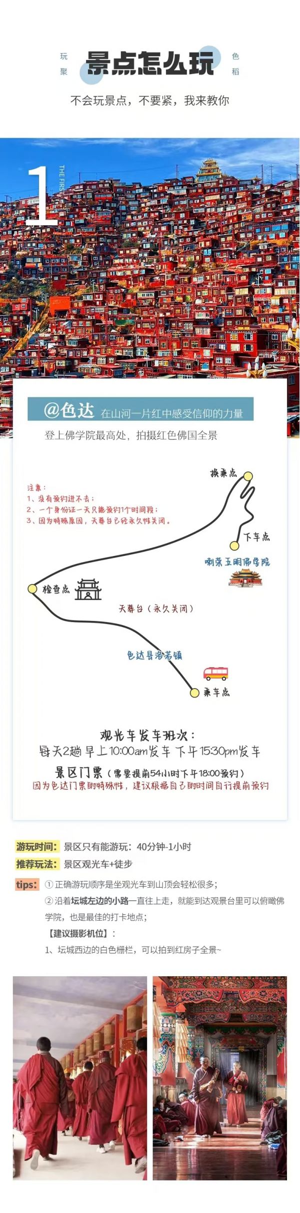 ①色達(dá)均是預(yù)約進(jìn)入,統(tǒng)一觀光車參觀游覽。