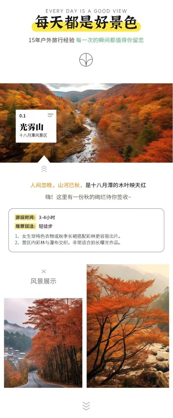 早餐后從從鎮(zhèn)上出發(fā),約15分鐘便可抵達(dá)【米倉山國家森林公園(大壩景區(qū))】,秋天向來是彩色的,巴中光霧山也漸漸開始展現(xiàn)出它最美的那面,紅葉一日一色,一步一景,紅得風(fēng)韻特別,紅得多姿多彩,紅出了“丹楓爛漫錦裝城,要與春花斗眼明”的奇妙佳境,毫不夸張的說光霧山的秋天就是我心中的Top1。