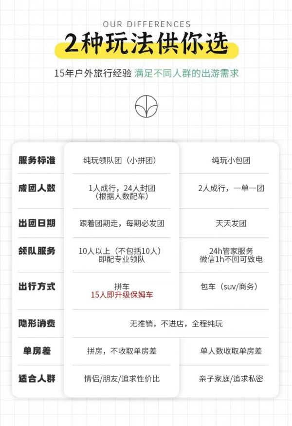 私人訂制:我們業(yè)務(wù)范圍囊括了全國各大城市,川西、西北、新疆,在路上永遠(yuǎn)有我們的身影。我們將為每一個(gè)有定制需求的你策劃出獨(dú)屬于自己的完美旅行。
