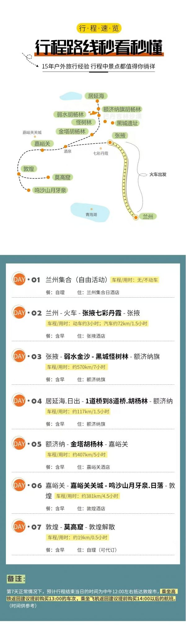 備注請對應(yīng)使用我方額濟納7日行程,因使用其它行程造成的投訴,責(zé)任自負(fù);請仔細(xì)閱讀以上行程文檔,同意并保證遵守我方安排,以免為您帶來不必要的麻煩;如產(chǎn)生合同糾紛或人身意外事故,按《中華人民共和國合同法》、《道路交通法》、《保險賠償條例》裁定;本行程作為旅游合同附頁與旅游合同同等法律效力。