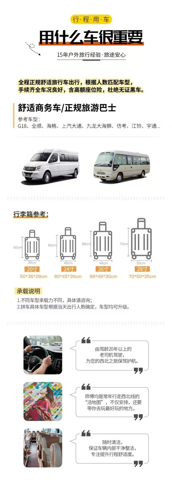 服務(wù):10人及以上(包含10人),提供持證正規(guī)領(lǐng)隊服務(wù);10人及以下,由經(jīng)驗豐富的司機帶隊,無單獨導(dǎo)游服務(wù),請諒解。