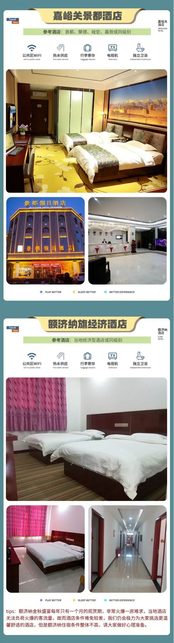 3. 額濟納金秋盛宴每年只有一個月的賞味期,全國各地的游客蜂擁而至,小鎮(zhèn)各項資源過載,當(dāng)?shù)夭粩嗤晟破渑涮踪Y源但基礎(chǔ)設(shè)置仍較薄弱,請大家以平常心對待。