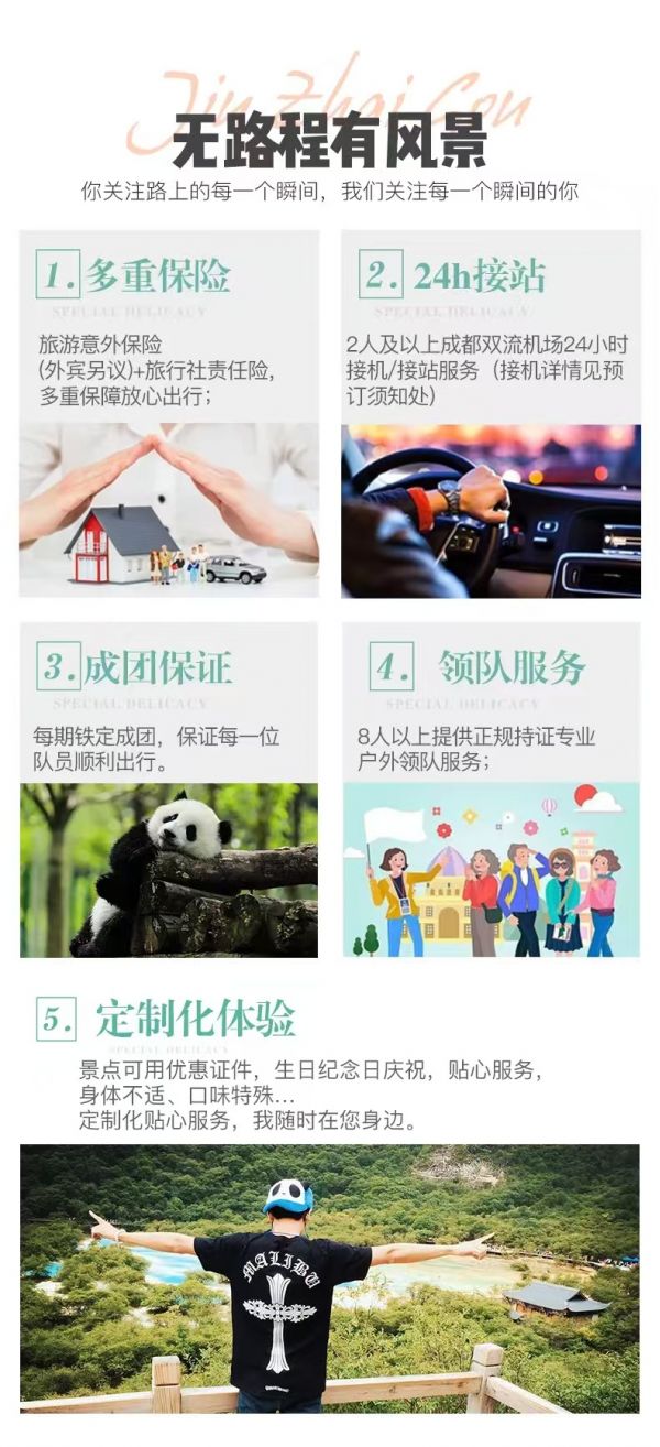 (2)九寨溝面積較大游客需求不一,因此主要以游客自助游形式游覽,如無領(lǐng)隊(duì)陪同望您諒解。游覽開始前領(lǐng)隊(duì)會與您約定好集合時間,請務(wù)必按時到達(dá)指定地點(diǎn),避免耽誤大家接下來的行程;