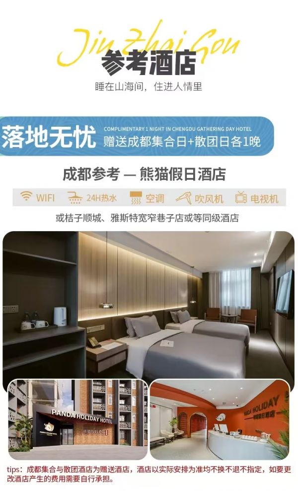 (5)贈送成都集合日和散團(tuán)日酒店各1晚;