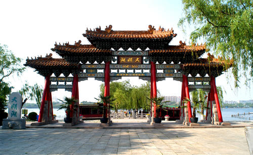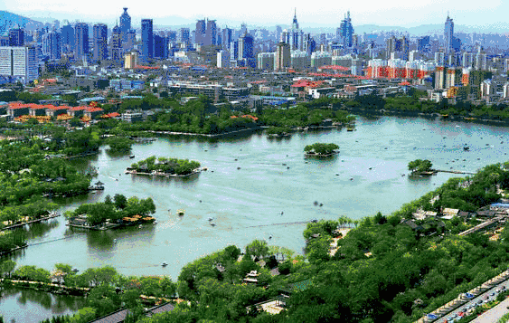 大明湖是濟南三大名勝之一,是繁華都市中一處難得的天然湖泊,也是泉城重要風(fēng)景名勝和開放窗口,聞名中外的旅游勝地,素有“泉城明珠”的美譽。它位于濟南市中心偏東北處、舊城區(qū)北部。大明湖是一個由城內(nèi)眾泉匯流而成的天然湖泊,面積甚大,幾乎占了舊城的四分之一。市區(qū)諸泉在此匯聚后,經(jīng)北水門流入小清河。現(xiàn)今湖面46公頃(690畝),公園面積86公頃(1290畝),湖面約占百分之五十三,平均水深2米左右,最深處約4米。