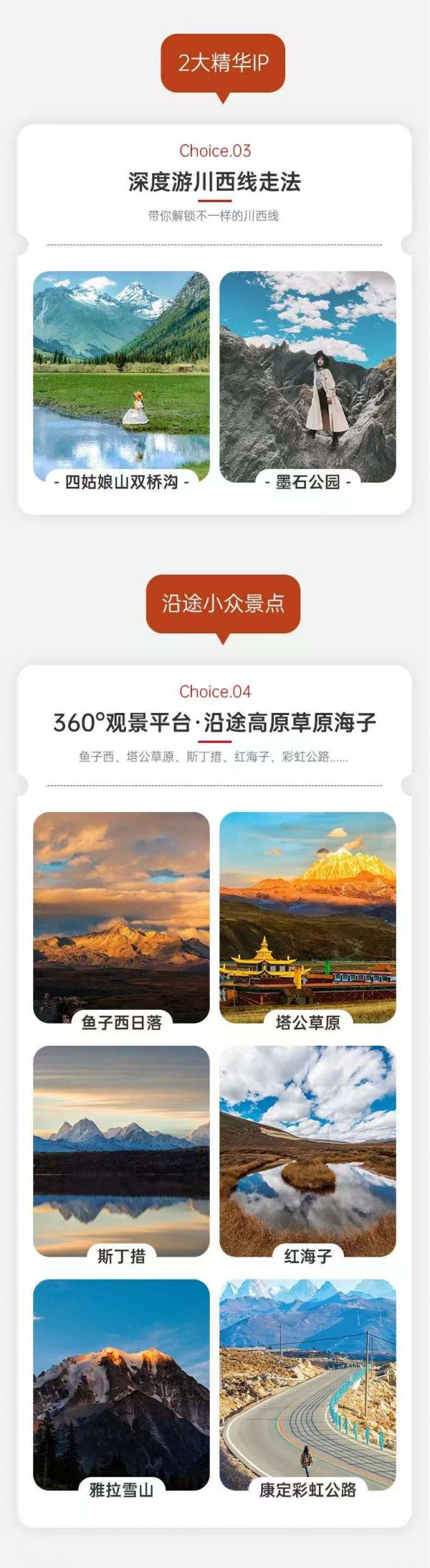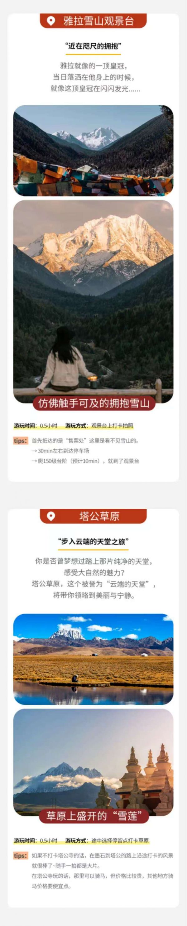 隨后前往【魚子西】在這里你可以感受日照金山的壯闊, 也可以和雅拉雪山來一次近距離的合影,還可以遠眺貢嘎雪山和云海。夜深了,還能看到肉眼可見的星空和銀河。游覽結(jié)束后經(jīng)塔公草原返回新都橋——被譽為“攝影家的天堂”,又被稱為東俄洛,光影變化極其美麗。游覽結(jié)束后經(jīng)塔公草原返回新都橋——被譽為“攝影家的天堂”,又被稱為東俄洛,光影變化極其美麗。
