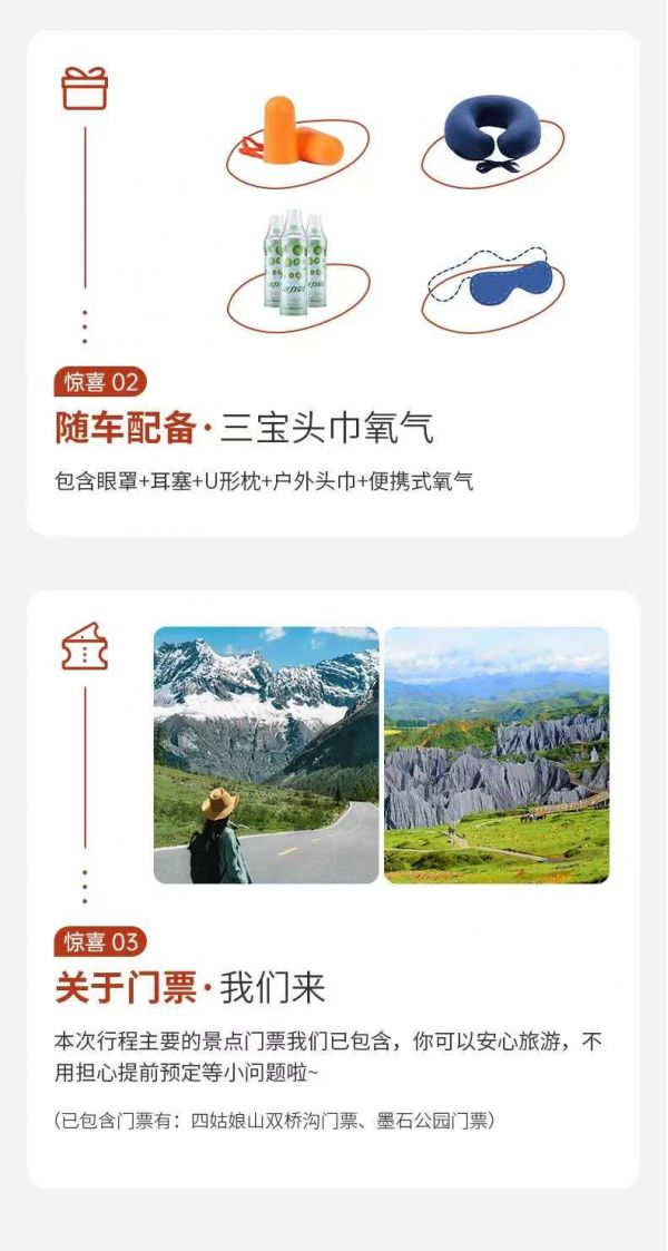 門票:四姑娘山雙橋溝門票、墨石公園門票