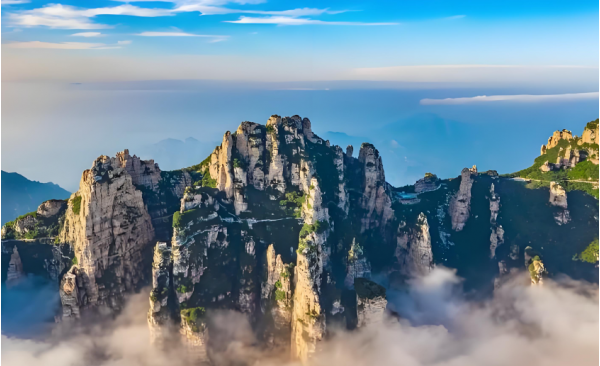早餐后赴國家AAAAA級景區(qū)-白石山景區(qū),從東門進入景區(qū)后上山。隨后游覽白石山國家地質(zhì)公園,它位于河北省淶源縣城南15公里,雄居八百里太行山最北端,景區(qū)面積54平方公里,最高峰云都峰海拔2096米。整個景區(qū)集黃山之奇、華山之險、張家界之秀于一身,并可用“雄”、“險”、“奇”、“幻”4個字加以概括。峰高谷深,峰林壁立,落差可達600米。戰(zhàn)國時度嶺分燕趙,遼宋時一山分兩國。白石山奇峰林立,絕壁橫陳,險壑縱布,到處直上直下如刀削斧劈,少曲線,多棱角。尤其是峰林地貌帶,高差大,密度大,是我國惟一的大理巖峰林景觀。