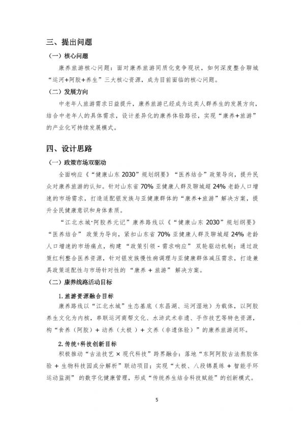 “江北水城·阿膠養(yǎng)元記”康養(yǎng)路線以《“健康山東2030”規(guī)劃綱要》“醫(yī)養(yǎng)結(jié)合”政策為導(dǎo)向,緊扣山東省70%亞健康人群及聊城超24%老齡人口增速的市場痛點(diǎn),構(gòu)建“政策引領(lǐng)-需求響應(yīng)”雙輪驅(qū)動(dòng)機(jī)制:通過政策紅利整合醫(yī)養(yǎng)資源,針對(duì)銀發(fā)族慢性病調(diào)理與亞健康群體減壓需求,打造兼具政策適配性與市場針對(duì)性的“康養(yǎng)+旅游”解決方案。
