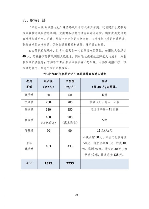 “江北水城·阿膠養(yǎng)元記”康養(yǎng)旅游路線財(cái)務(wù)計(jì)劃